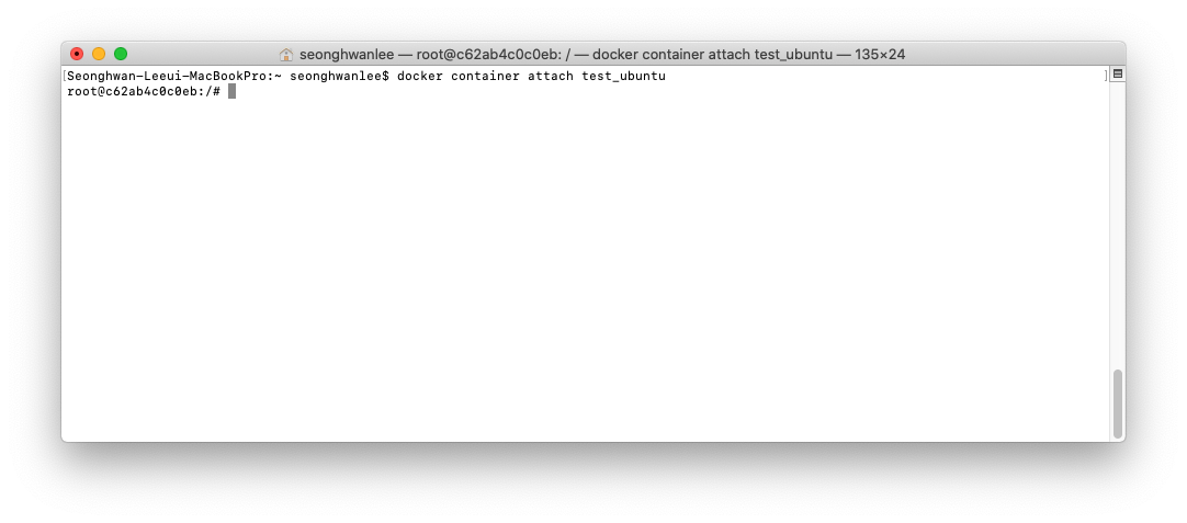 test_ububtu는 컨테이너 별칭입니다. 별칭 대신 c62ab4c0c0eb(컨테이너 ID)를 입력해도 무관합니다.